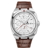 Der Chronograph hat einen zentralen Minutenzeiger — einen Zeiger, der von der Mitte des Zifferblatts aus läuft, wie der reguläre Minutenzeiger.