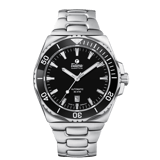 Titanium or 316L steel — the same 500-metre depth rating and the same Cal. 330 with 41-hour reserve. The Seven Seas is 40% lighter; the S trades weight for corrosion resistance.