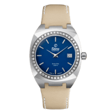 Sky →Both dress watches from the Glashütte workshop. The Saxon One Lady at 36mm with automatic or quartz; the Patria hand-wound only.