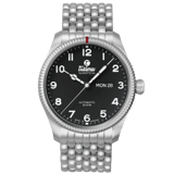 这一表盘布局于1941年获Luftwaffe批准。大号阿拉伯数字。铁道式分钟刻度。9点和3点位置各一个计时盘。Grand Flieger Classic忠实复刻了这一设计——相同的比例、相同的数字风格,唯一的现代化在于内部机芯。八十年后,将一张1941年原版的照片与Grand Flieger Classic并排放置,可以清晰看到延续。改变的是佩戴者:今天的飞行员选择了这枚表,而非被配发这枚表。