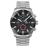 功能: Date display. Hour, minute, small second, Chronograph 60-second counter, 30-minute counter and 12-hour counter. Sweep second counter. Officially certified German chronometer according to DIN norm 8319.
