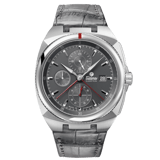 這枚計時碼錶配備中央分鐘指針——一根從錶盤中心掃過的指針,如同常規分鐘針。模組從中心而非副盤驅動指針。Tutima自主製造了這個模組。Cal. 521。效果是:計時時,讀取計時分鐘的方式與讀取時間完全相同——一目了然,無需湊近。在Glashütte製造,德國自1845年以來的製錶之都。來自Glashütte的自製級計時碼錶,€3,400起。